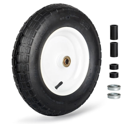 Wheelbarrow Rubber Tire, 14-inch Pneumatic Wheel, 3"-6" Centered Hub, 5/8" & 3/4" Ball Bearings, Replacement 4.80/4.00-8, 3.50/2.50-8, 4.00-6, 4.00-8 Wheelbarrow Wheels